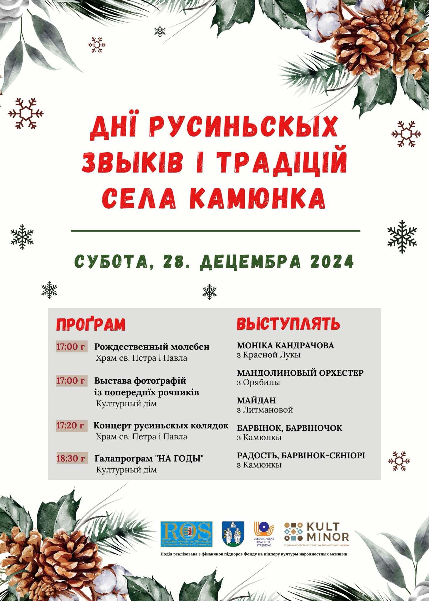 Serdečňi Vas pozyvame na každoročne podujaťa DNI RUSINSKYCH ZVYKYV I TRADICIJIV SELA KAMJUNKA, kotre ša uskutočnit v subotu 28. 12. 2024 v Kamjunci. Christos raždajetsja…