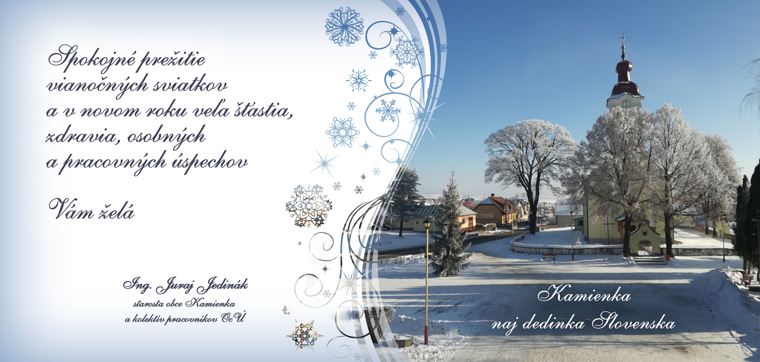 Spokojné prežitie vianočných sviatkov a v novom roku veľa šťastia, zdravia, osobných a pracovných úspechov Vám želá