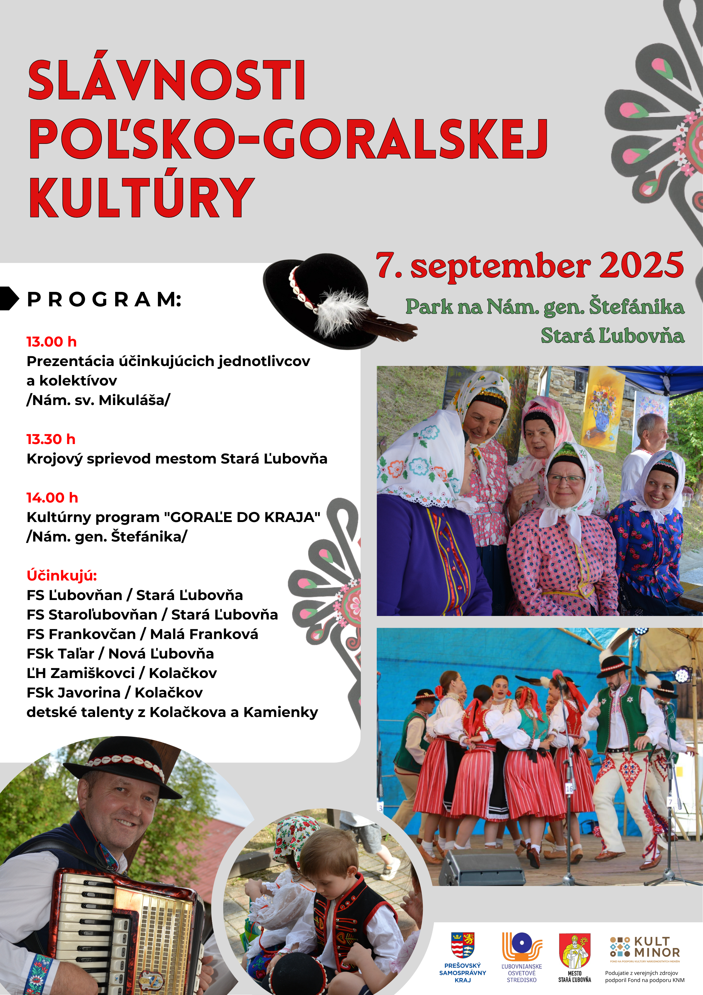 Stará Ľubovňa, 2. september 2025 – V nedeľu 7. septembra sa v Starej Ľubovni uskutočnia Slávnosti poľsko-goralskej kultúry, ktoré sú už tradične venované jedinečnému kultúrnemu dedičstvu goralov a bohatým väzbám slovensko-poľského pohraničia.